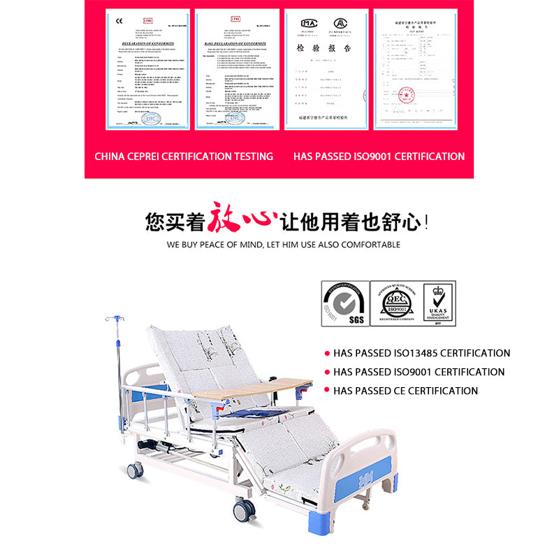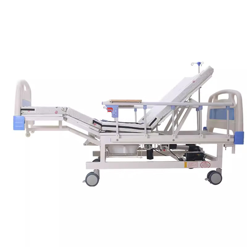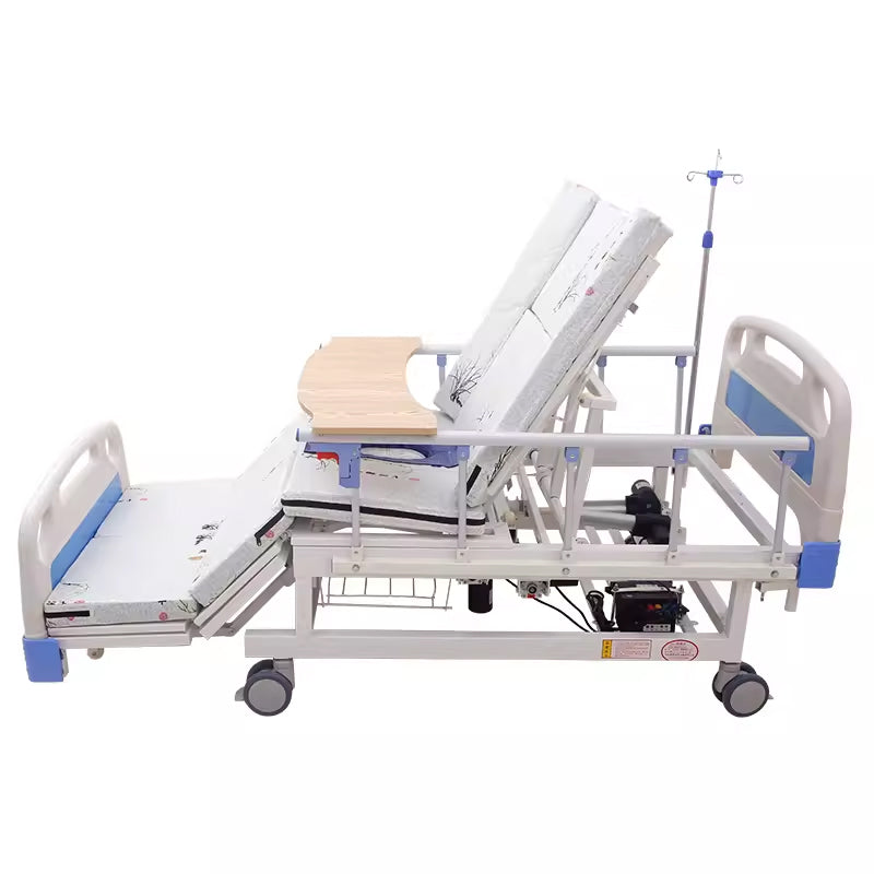 Electric multifunctional nursing bed with automatic toilet hole for turning over, lifting the back, lifting the legs, washing hair, feet, and dining